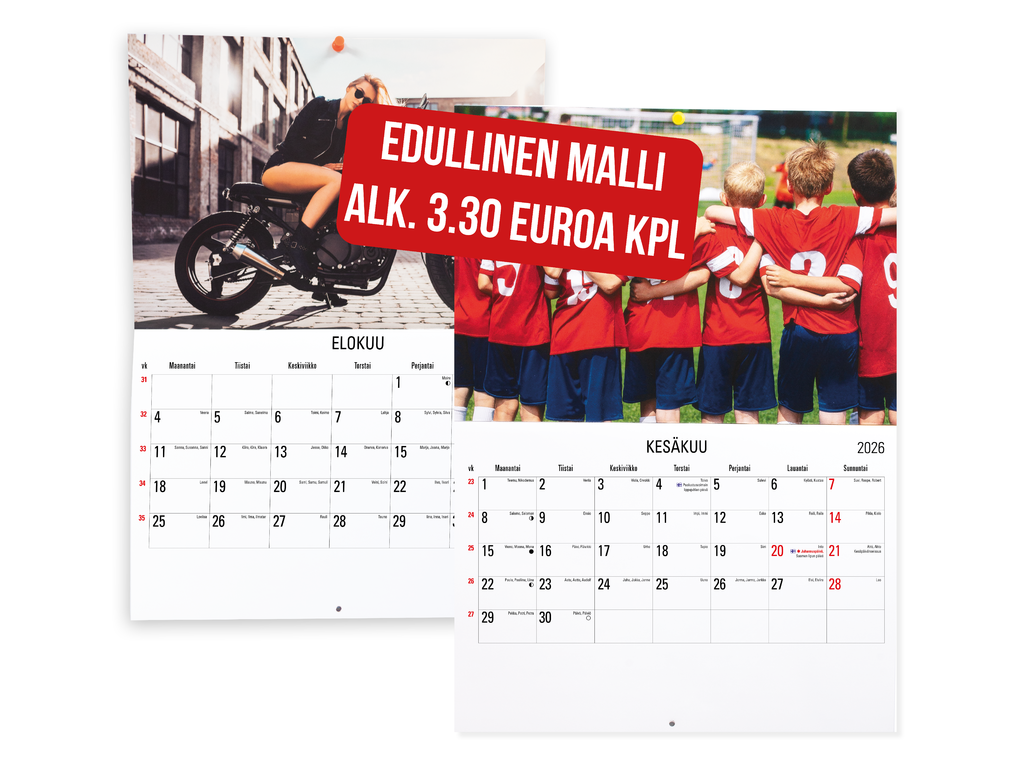 A4 Seinäkalenteri vihkomalli avattuna A3, LOGO Seinäkalenterit omilla kuvilla